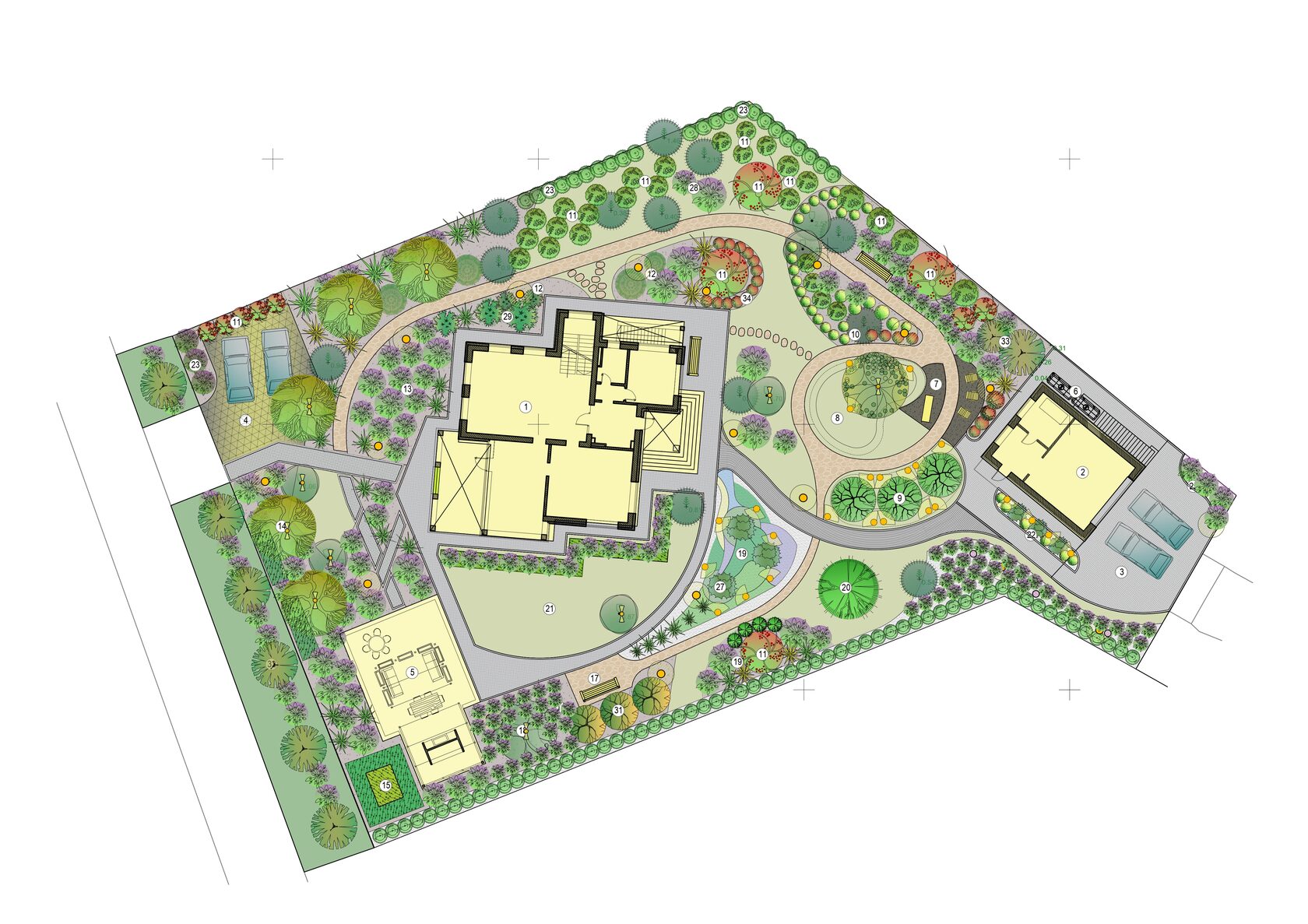 Посадочный чертеж деревьев и кустарников
